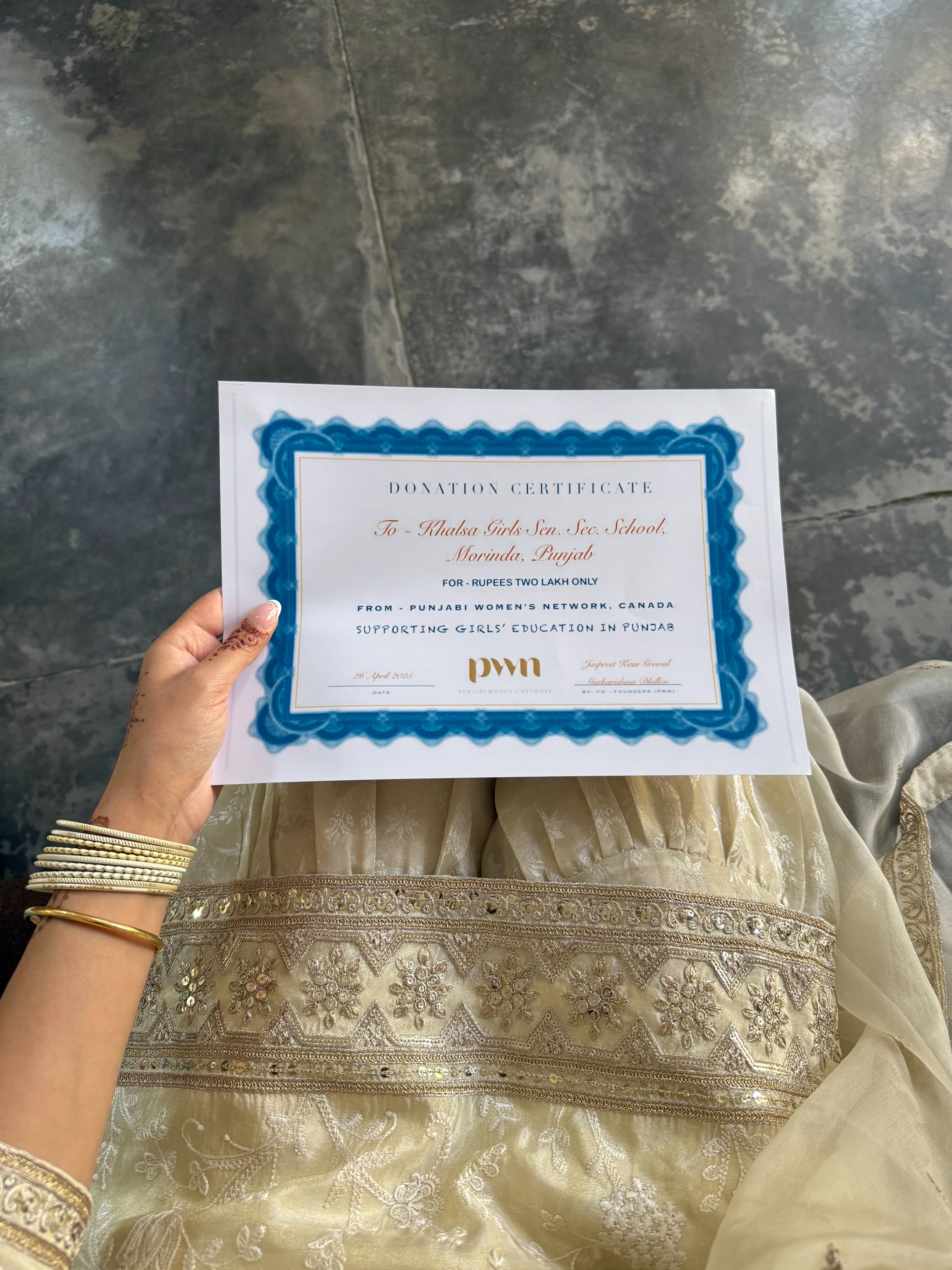 All funds raised through this initiative will be donated directly toward Grade 11 and 12 tuition for girls enrolled at Khalsa Girls Senior Secondary School, Morinda, Punjab. PWN has proudly supported this school since 2022, helping over a hundred girls continue their education during the most critical years of their academic journey.
