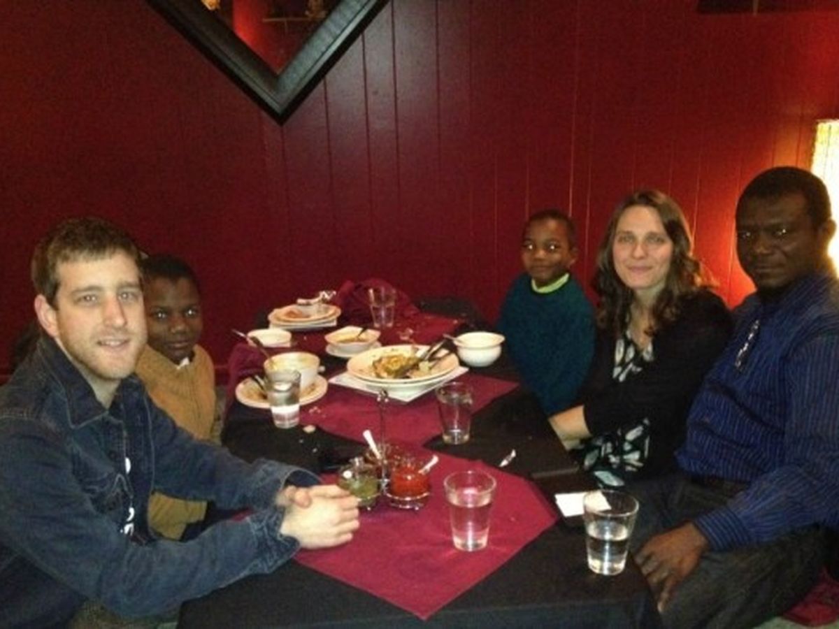 A farewell dinner the eve of my departure from Buffalo. (From left to right: myself, Yao, Gnolou, the head of the local Boys and Girls Club chapter, and Bouazo)