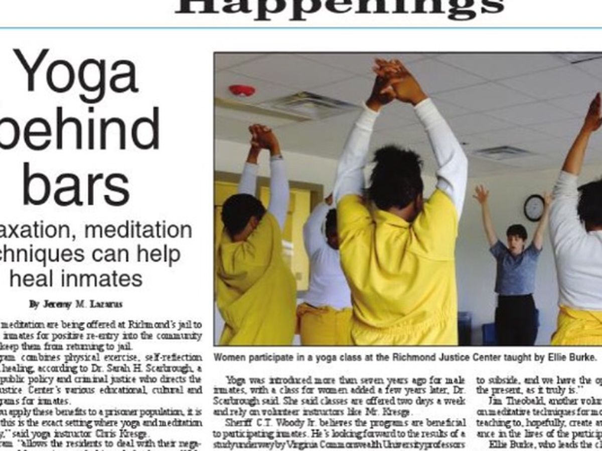 I have been volunteering my time to teach yoga (including yoga nidra & meditation) to the women at the Richmond City Jail for the last year with the hope of providing them with a way to increase their self-awareness, undo deeply held tension, and gain a sense of self that is other than what they've experienced potentially throughout their entire lives.