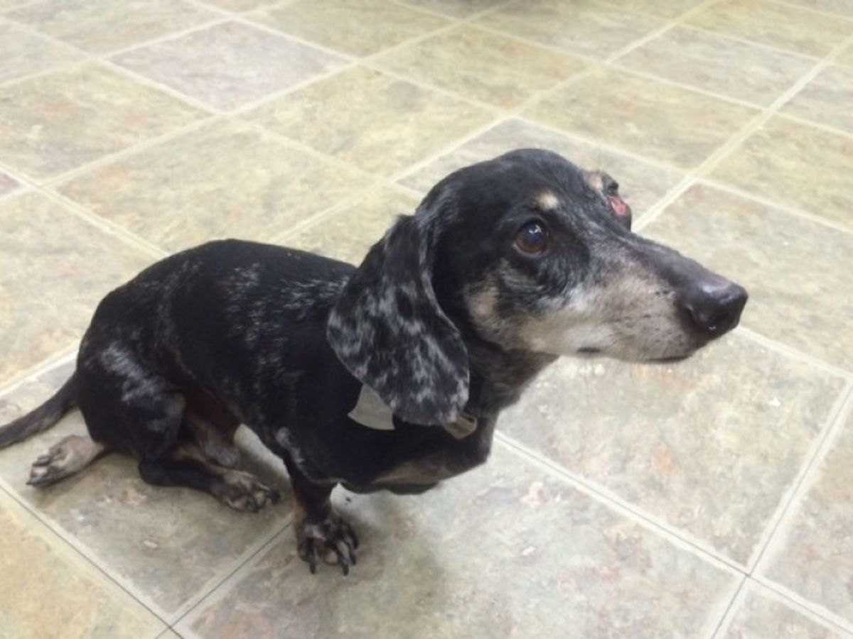 Keebler, an 8 year old Dachshund, was recently found stray in Nashua and brought to the Humane Society for Greater Nashua (HSFN) where he’s been receiving lots of love and care, but he needs more help. Keebler’s rear legs are paralyzed likely caused by extensive chronic disc disease, which is often seen in this breed and he needs both spinal x-rays to confirm the diagnosis. In addition this little guy needs surgery on his left eye as he’s suffering from something commonly called “cherry eye,” which is a small red mass in his eye that impairs his vision. The mass is a prolapsed tear duct and can only be surgically repaired by a specialist. He also has severe dental disease.