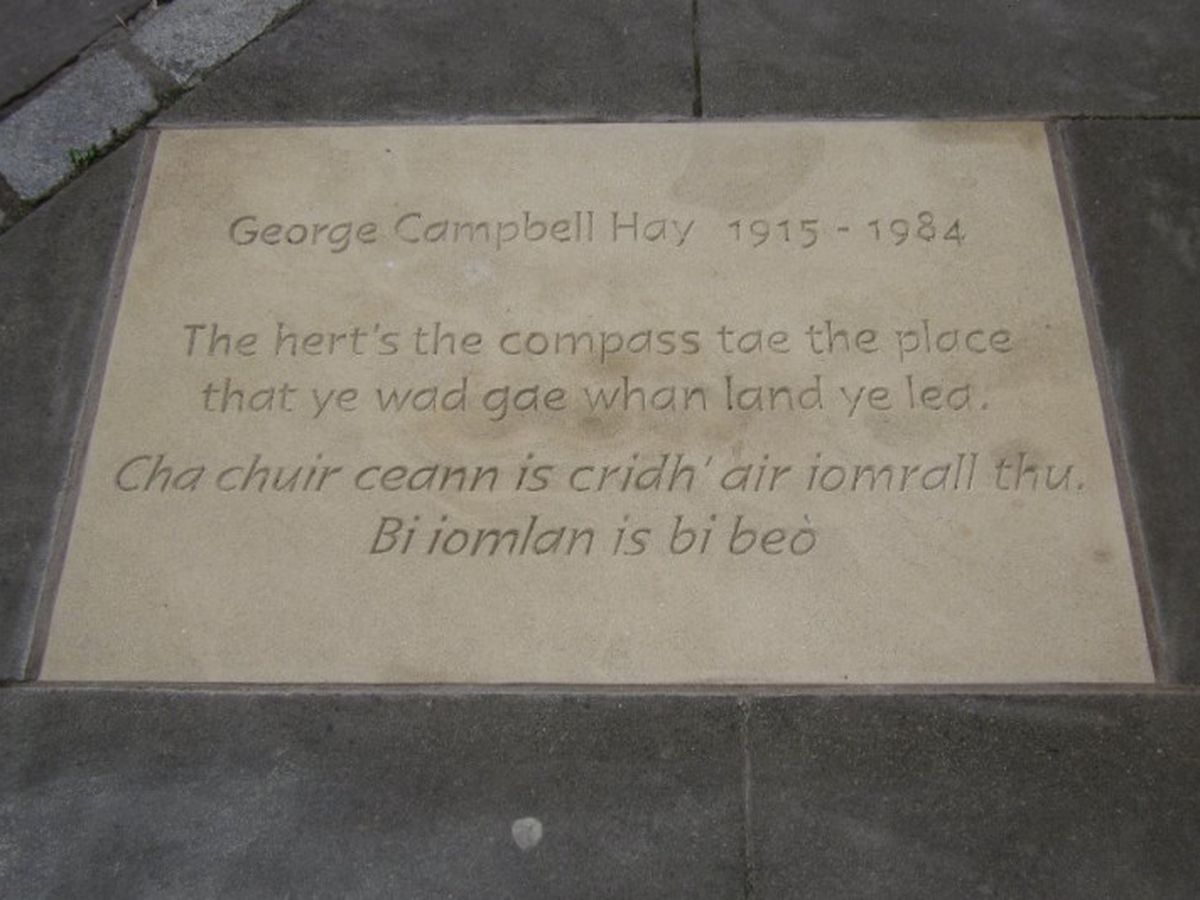 George Campbell Hay/Deòrsa Mac Iain Dheòrsa (1915 - 1984) was an outstanding Scottish poet , and one of the very few ever to write in all three langauges of Scotland; Scots, Gaelic and English.