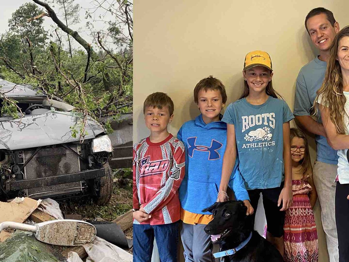 Brandon was at work when the Tornado touched down. Roxie got the children into the basement before the windows blew in and sections of the house were tossed hundreds of meters across the field. Their minivan was lifted and crushed 50 feet from where it was parked.