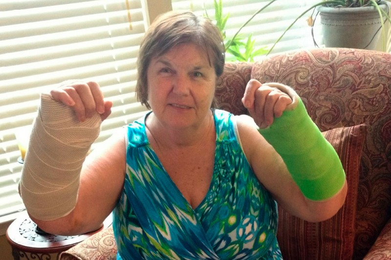 Then on July 12th, I fell and broke both my wrists! My left wrist is in a cast for 6 weeks and my right wrist, which took the brunt of my fall had to have surgery last week. I sit here typing with a finger from each hand and the weight of my casts is causing my arms to ache.