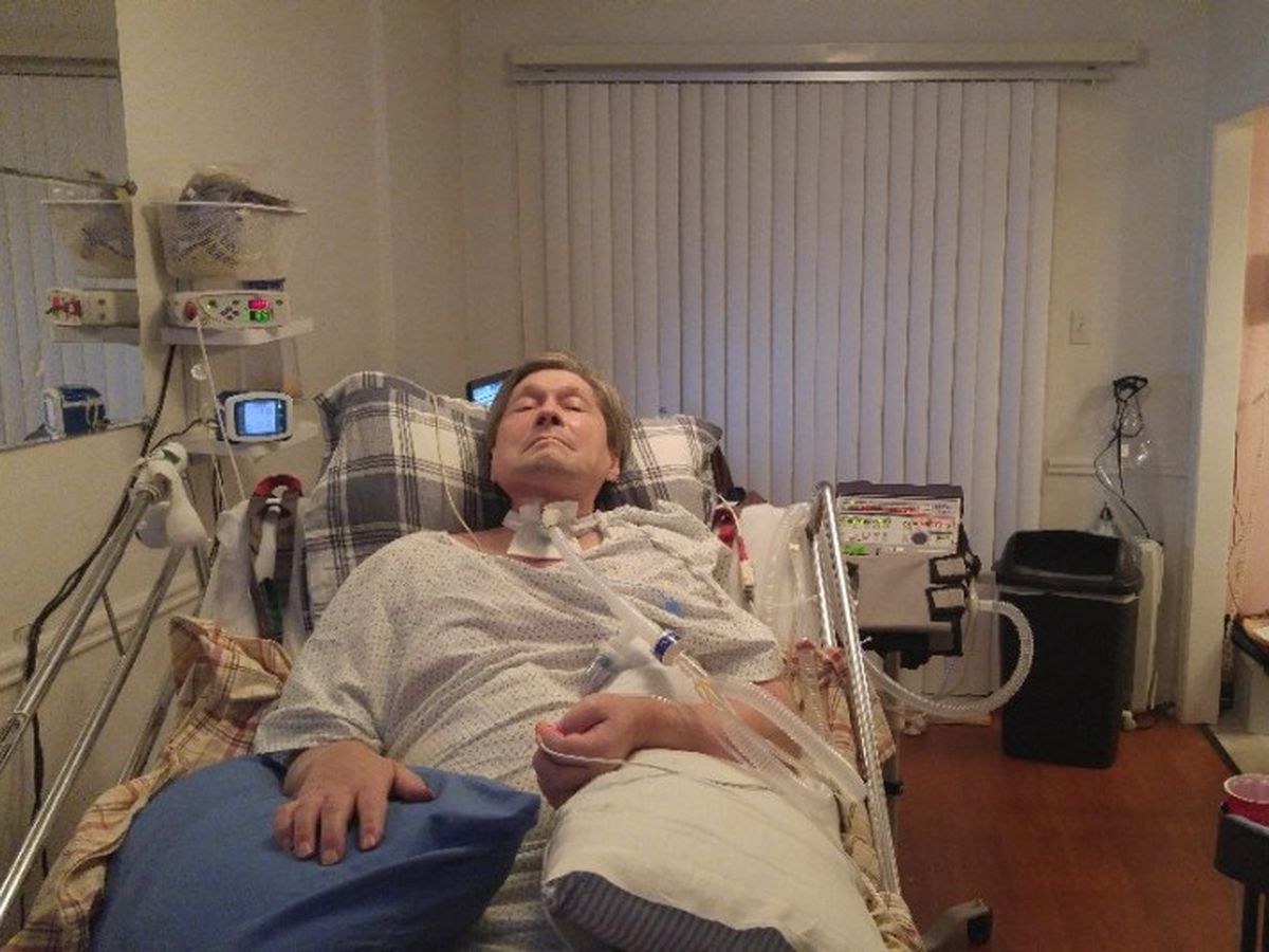 For Rick, his wife Nancy and son Rich, life is a daily challenge. Rick requires 24-hour supervision and care. He breathes through a tracheostomy tube and is fed through a G-tube. At night, he is on a ventilator and receives tube feedings through a pump and gastrostomy tube in his stomach.