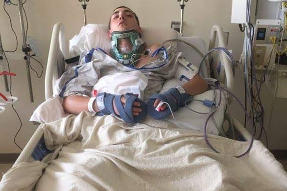 On 5/16/17, Alex was in a car accident. He was on his way to work with a friend, they fishtailed, and flipped. Alex landed on his neck and blacked out. Alex was then flown to Johnson City Hosptial. He's currently in ICU. He's stable, but he cannot move from the waist down.
