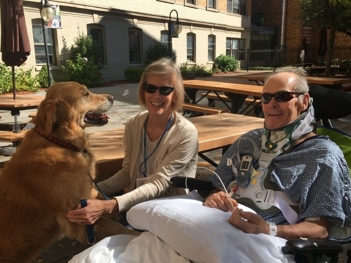 He was airlifted to Dartmouth-Hitchcock Trauma Center where doctors determined his cervical spine was so severely traumatized they immediately transferred him to Massachusetts General Hospital. He underwent life saving surgery for a complex C2-T1 spinal fracture. The surgeon said his spine was crushed and he lost seven liters of blood. Ken had a bumpy post-operative course with many complications. After one month he was transferred to Spaulding Hospital Cambridge to begin his journey forward with physical and occupational therapy. The injury has left him paralyzed in all four limbs except for very limited arm and wrist motion. He no longer has the use of his hands.