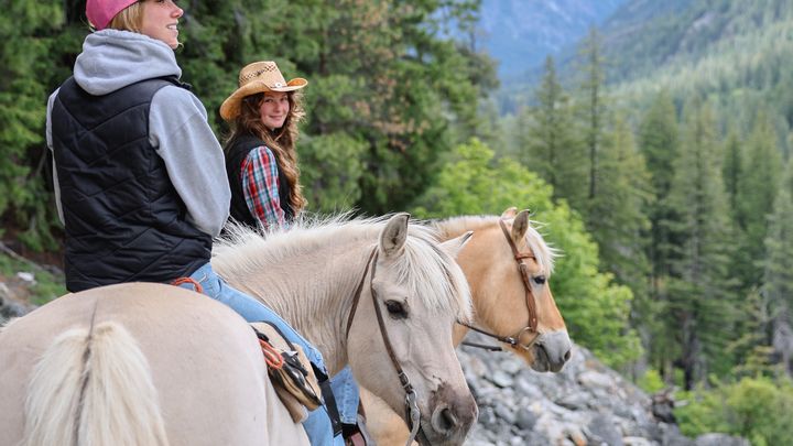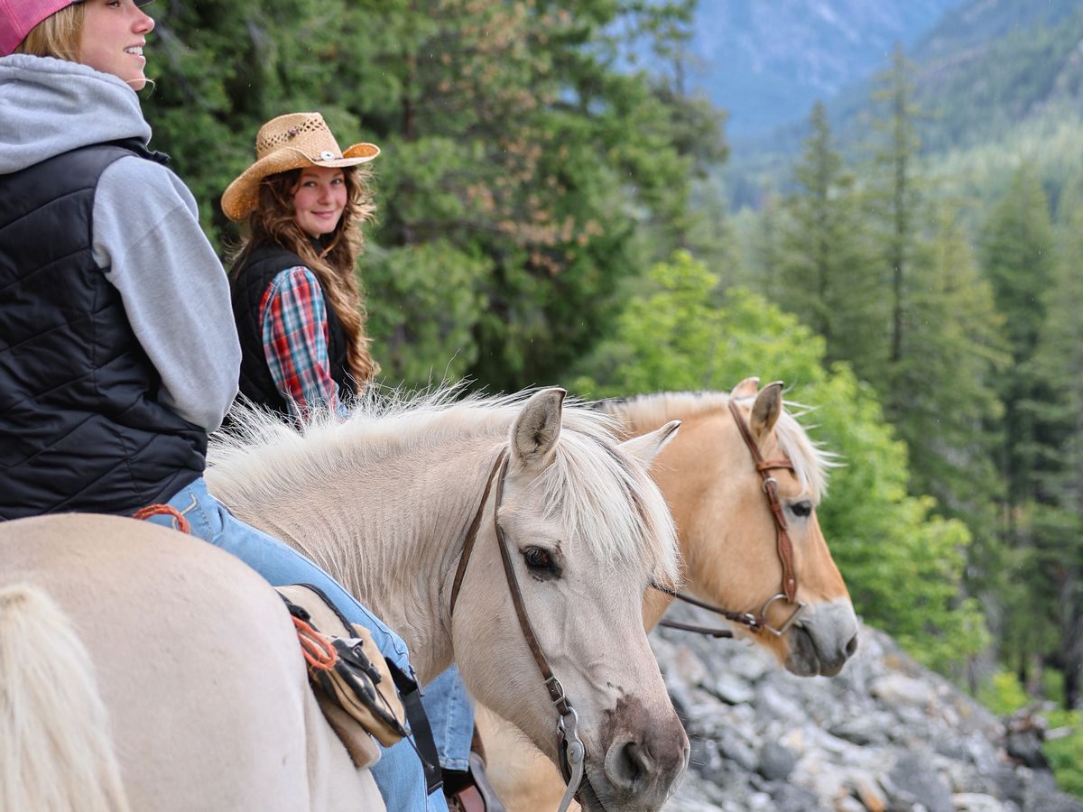 The Norwegian Fjord horses normally spend the summer months transporting guests on day-rides to Howard Lake or Bridge Creek. Spring and Fall are spent packing in camps to Cottonwood and Bridge Creek for their Tent-to-Tent program. Over the course of the summer, they enjoy hosting four horse camps, where young, hopeful equestrians get the opportunity to learn the basics of horse care and riding.