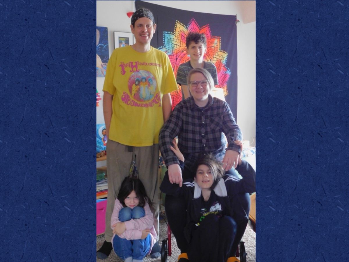 The Flexers are a close-knit, artistic and creative family of five who have overcome many challenges in the past 16 years. Each member of the family has different disabilities, and they have learned to turn this into a unique home culture. The Flexers are Jewish and participate in the local synagogue, with one child going to Hebrew School and David teaching there. The two parents Hilary and David, as well as two of their three children are queer. Hilary, a wheelchair user, is a published writer and artist who has been dealing with increasing levels of disability and chronic illness for the past sixteen years, and David, a writer, musician, and educator, has found meaningful work teaching and working with special needs students in between care-taking for family members. Following a long period of illness and confinement, Hilary has recently been approved for in-home care from the Tri-County Office on Aging, which would give David more time to devote to work and help Hilary to fully enjoy their family with increased access to the outside world.