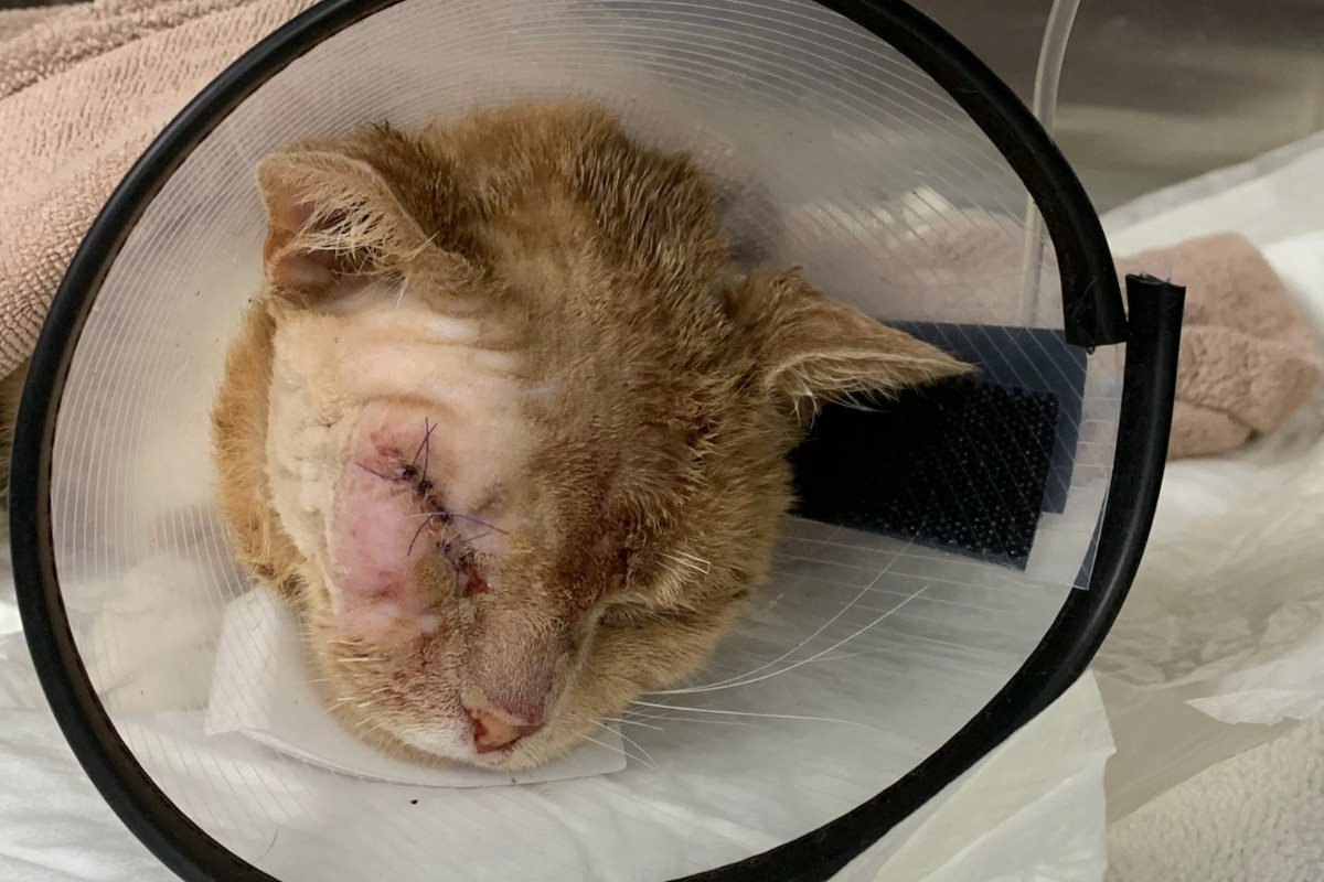The combined possible treatments and surgeries racked up to a pretty high bill. We were kind of freaking out because the ethical thing to do would be to give him the best care possible, but all we could afford to do was get his eye treated and honestly, we could barely afford to do that. Unfortunately, since too many days had gone by, we weren't able to save the eye. It's been about 24 hours since the surgery and this little man's big heart is really what's keeping him going. When he's not resting, he's using all of his strength and his wobbly, shakey legs to come over and to give us love and lots of purrs.
