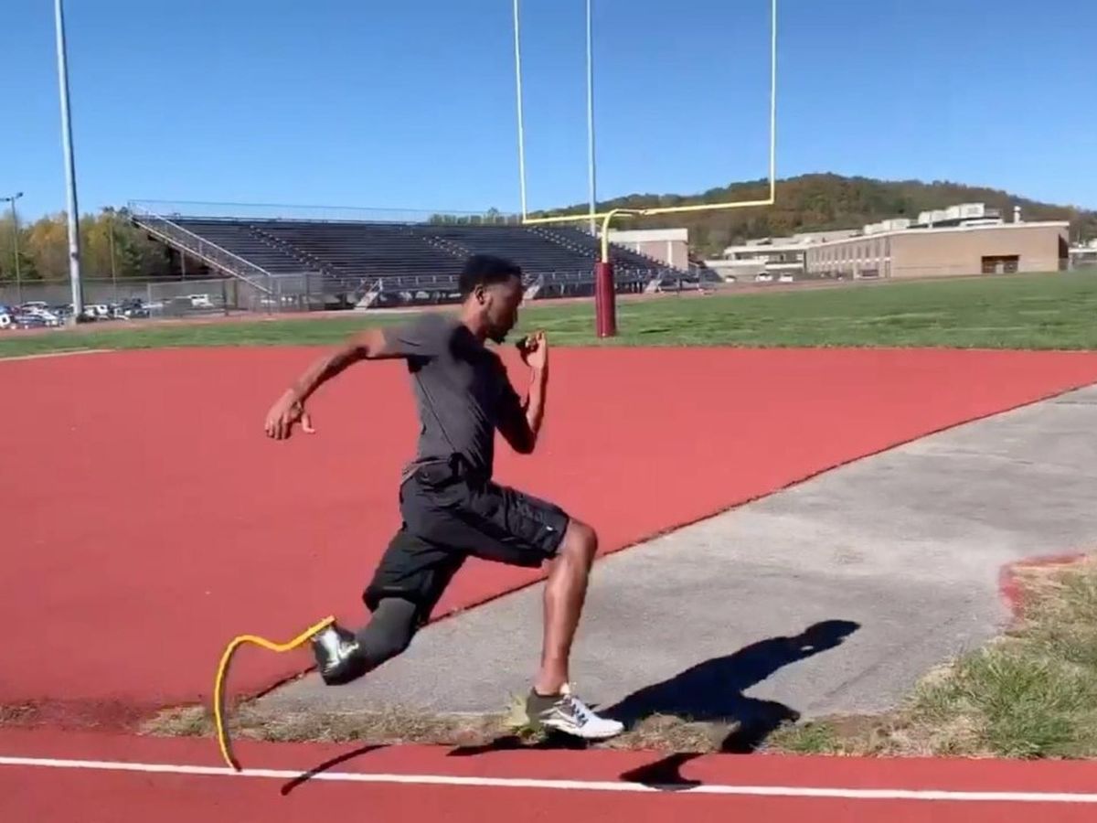 Prior to the amputation, Jonathan ran on the track team in middle school and high school. Then when he went to Concord University, he joined the Men’s track team. Each year he had a goal in mind of what he wanted to accomplish, and he always exceeded his goals.