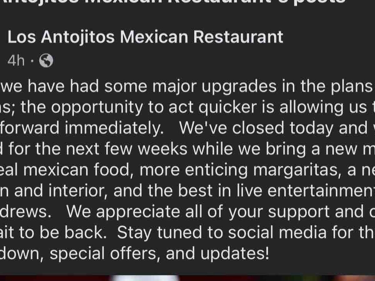 Today, 7/24/23 - the owners of Los Antojitos made the decision to close doors immediately for renovations. While we don’t know all the details behind their decision, it is impacting dozens of employees.