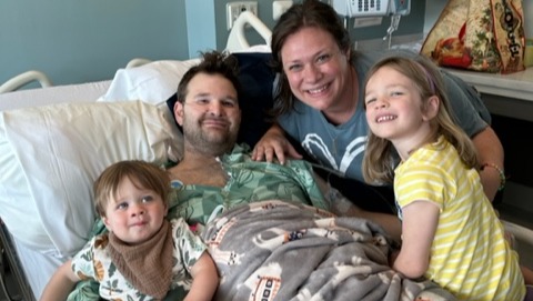 The summer of 2023 has been anything but normal for the Wadsworth family. Chris, age 33, is a loving husband to Megan and a father of two precious children, Camille and Mason (ages 4 and 1). Chris has been in and out of the hospital many times this summer, with 6 ER visits, a diagnosis of CTEPH, and extremely high pulmonary artery pressures. Currently, he is in the ICU at Emory and has been there for 3 weeks. While in the ICU, they put him on a very strong IV medicine to stabilize his pulmonary hypertension and improve right heart function. Upon discharge, he will remain on the medicine at home through a central line and pump. Chris will eventually require surgical intervention sometime in the next few months, which will more than likely take place in San Diego.