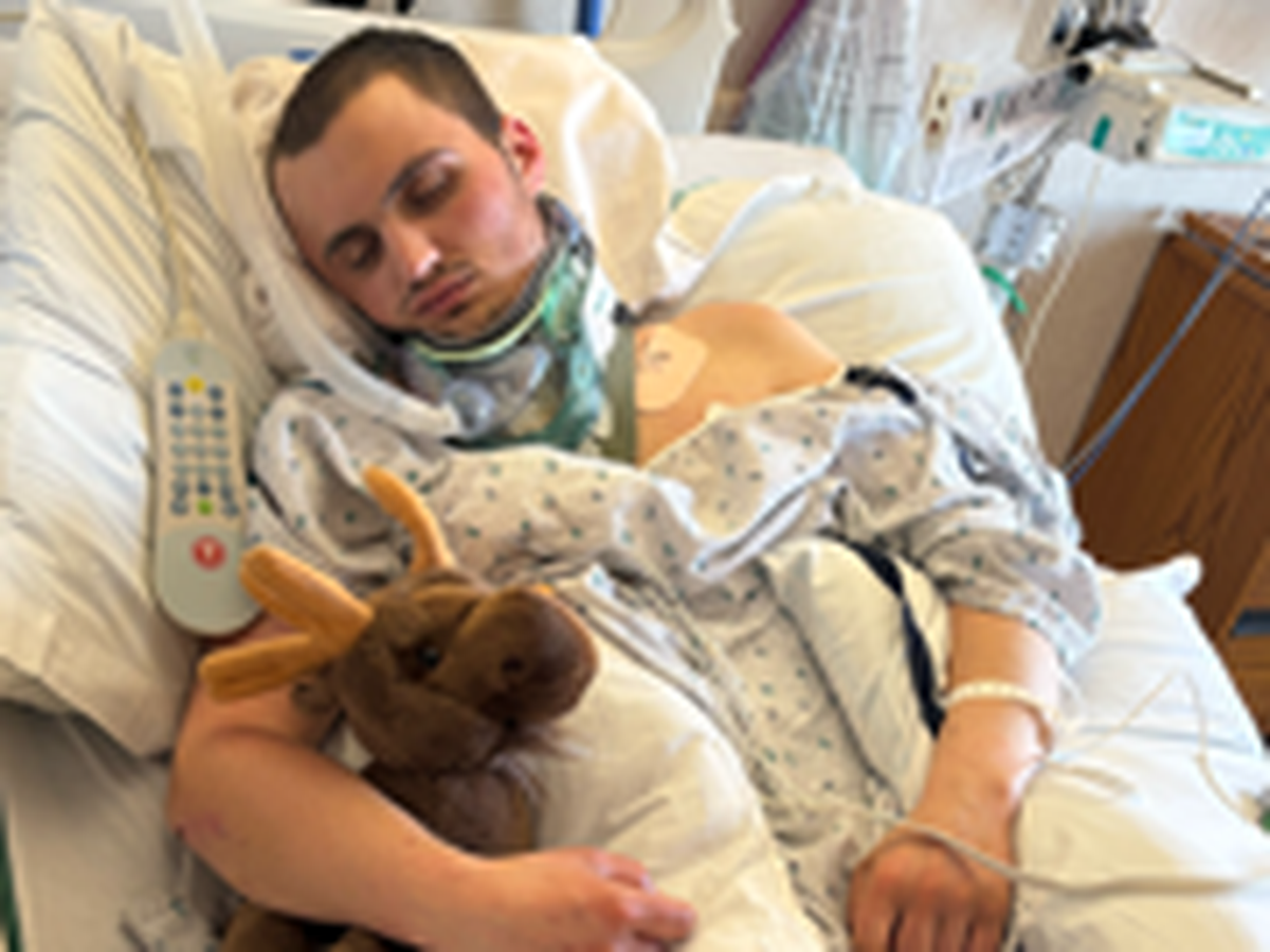 He was airlifted to LVHN Muhlenberg. He had a double pneumothorax (collapsed lungs), a right clavicle fracture, and multiple fractures on the right side of his face. He also had two major brain bleeds, and his brain was sunken down onto his brain stem. He had emergency brain surgery to evacuate the bleeds; they removed part of his skull to accommodate swelling, and they also performed a right temporal lobectomy.