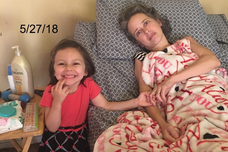 Her husband Brian, an Army vet, has handled Pam's around the clock care. Brian still works full time, handles her night time care, leaves work at lunch to prepare her meal, feed and tend her personal care. Family is with her during the day in case of emergency. The disease attacks have been aggressive and frequent. She is in constant raw nerve pain with lesions to the 8th vertebra. She is experiencing failing vision, respiratory distress and bed sores.