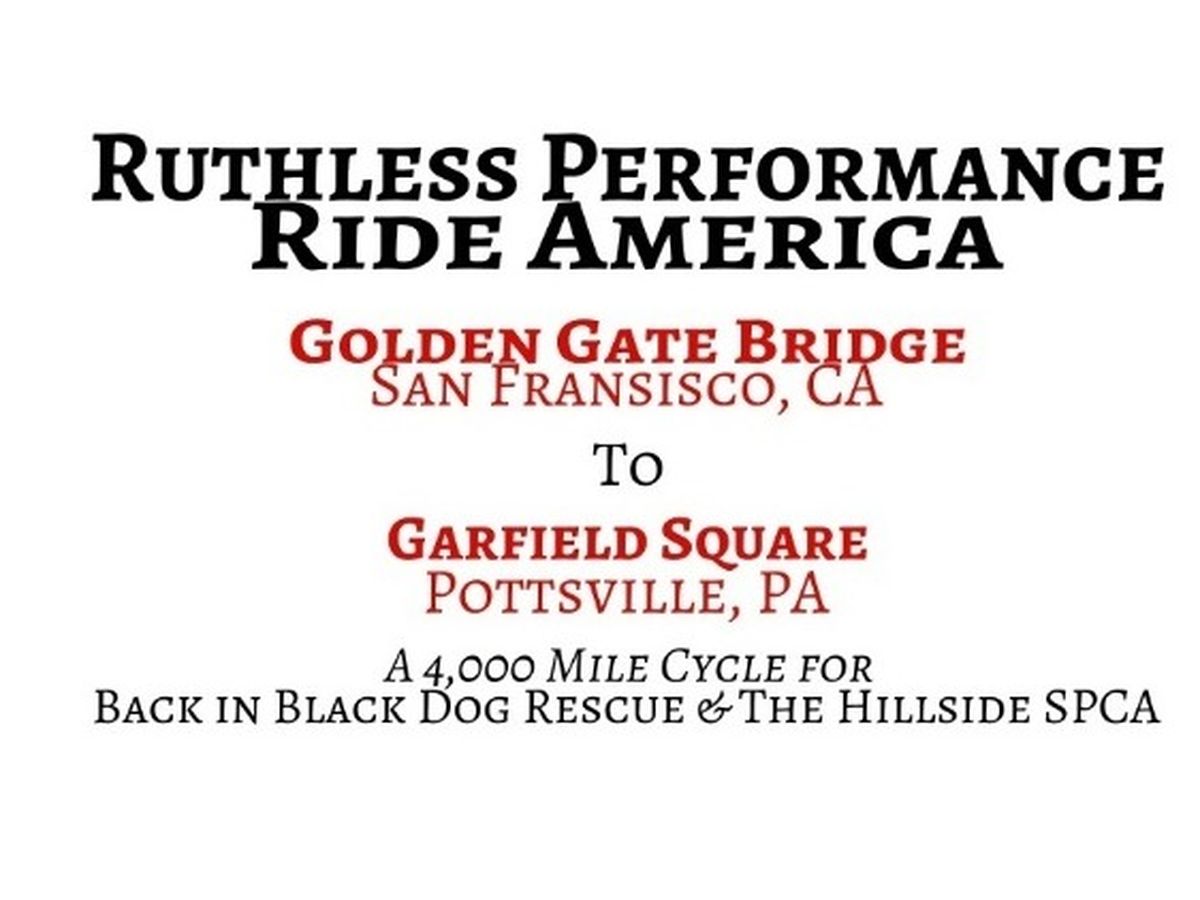 John Matulevich, owner of Ruthless Performance will be bicycling cross-country for Hillside SPCA and Back in Black Dog Rescue to raise $10,000 and awareness for Hillside SPCA and Back in Black Dog Rescue.