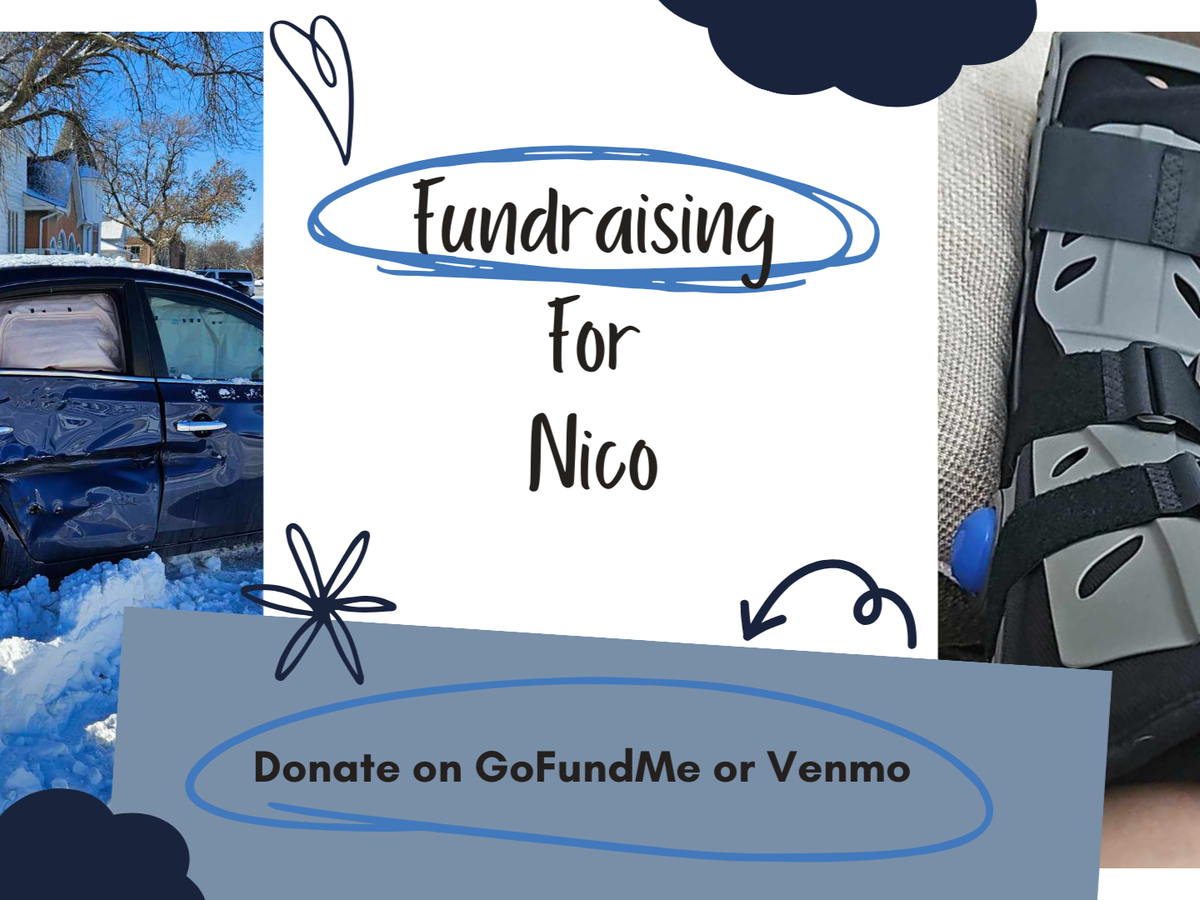 Late December while leaving work one night Nico was walking out of the building to go home for the night when she was struck by a car. The driver did not stop, even after hitting another pedestrian, as she held onto the hood of the vehicle she tried smacking the hood to get the driver's attention. After about 30 feet of being dragged along, both pedestrians fell backward onto the ground, the tire luckily did not roll over her foot but it struck and pressed it, a painful "pop" was felt on impact, and a second after hitting the ground, followed by a third when attempting to stand. Palms bleeding, shins bruising, but luckily alive.