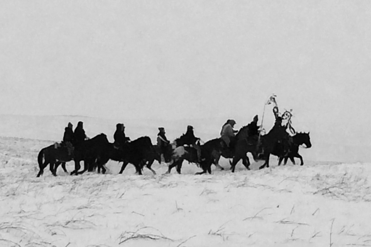 I have been honored to join my friends on the Wounded Knee and Dakota 38+2 Rides for the past 5 years. These rides take place each December, and commemorate the massacre of Wounded Knee in 1890 and the mass hanging of 1862 at the hands of the American government. The December rides go across 300 miles on horseback, they last for over 2 weeks, and traverse frozen terrain in often below-freezing temperatures. The courage, endurance, and heart summoned from both horse and rider bind the community together--as do sharing of stories, singing, laughing, and cooking all along the way.