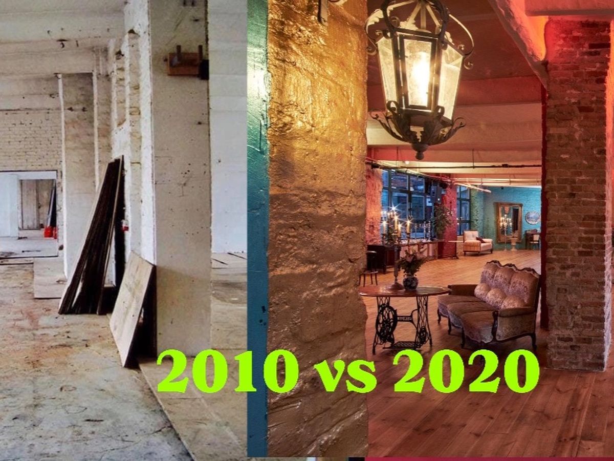 Aber auch die beiden Bars von Tango- und Lotusloft, die Küche , die Toiletten, 750qm Dielenfussboden mit Unterkonstruktion, sogar der Stuck aus dem Pariser