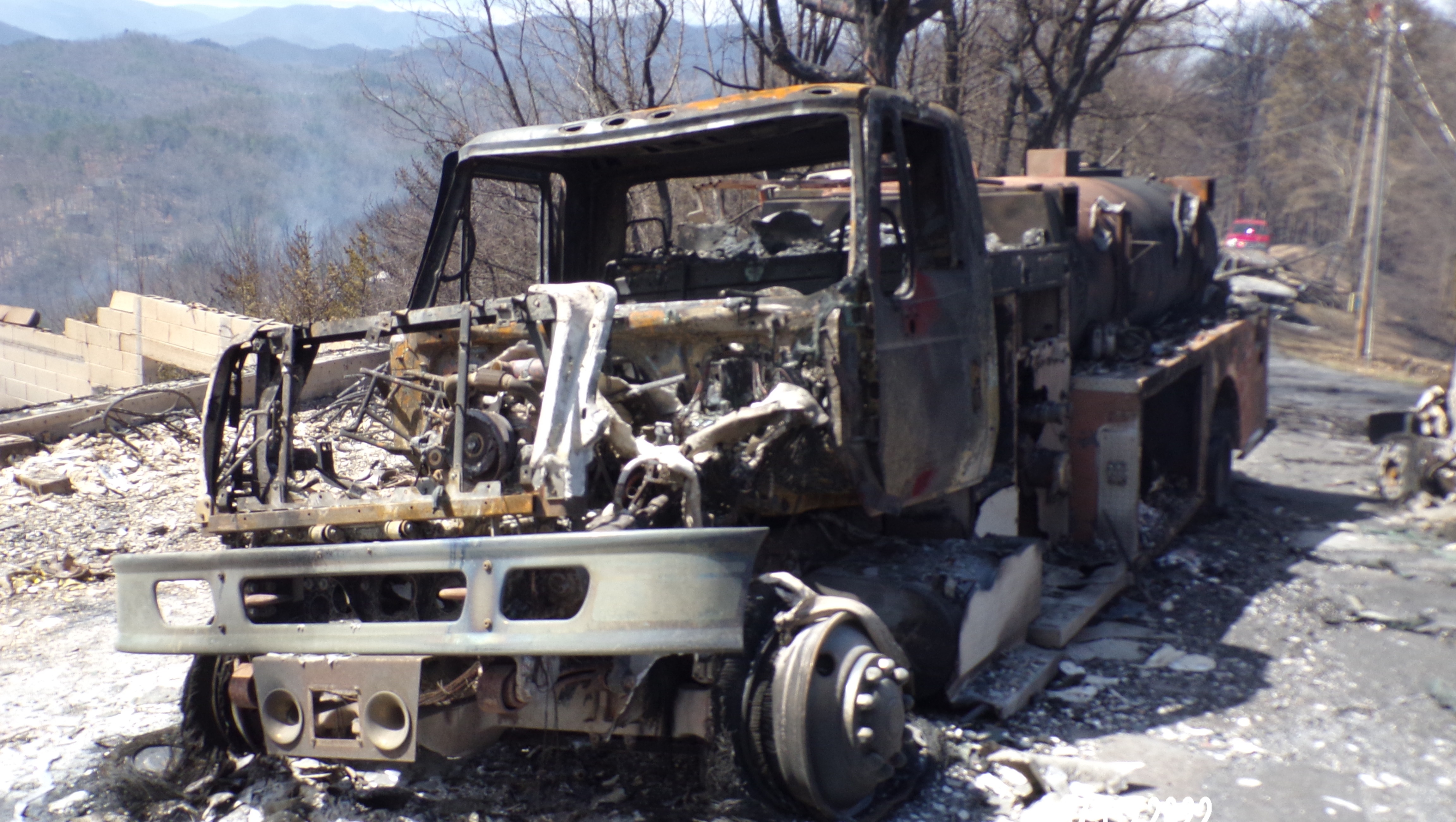On March 30, 2022, the PCFD and all Sevier County agencies were called to a fast-moving brush fire in the Wears Valley Tn. area. Shortly after arriving at a staging area, PCFD and a few other FD trucks were given an assignment. Once on scene, the brave men fought the fire the best that they could for as long as they could. It came to the point that the fire became so intense that they had to abandon their post and retreat into a house they were trying to protect. Once in there, they realized that the home they were in was now on fire. The only escape route was thru the back of the home and into the woods. Luckily, they were able to escape and get off the mountain. Unfortunately, all the fire trucks got burnt up in the fire that overtook the firefighters. Trucks can be replaced, but not can we ever replace our loved ones. We do have insurance on the fire trucks and all the equipment on them. In today's prices, everything has gone up, and the cost of a new fire truck and equipment is no different, but we will survive and continue our services as we always have.