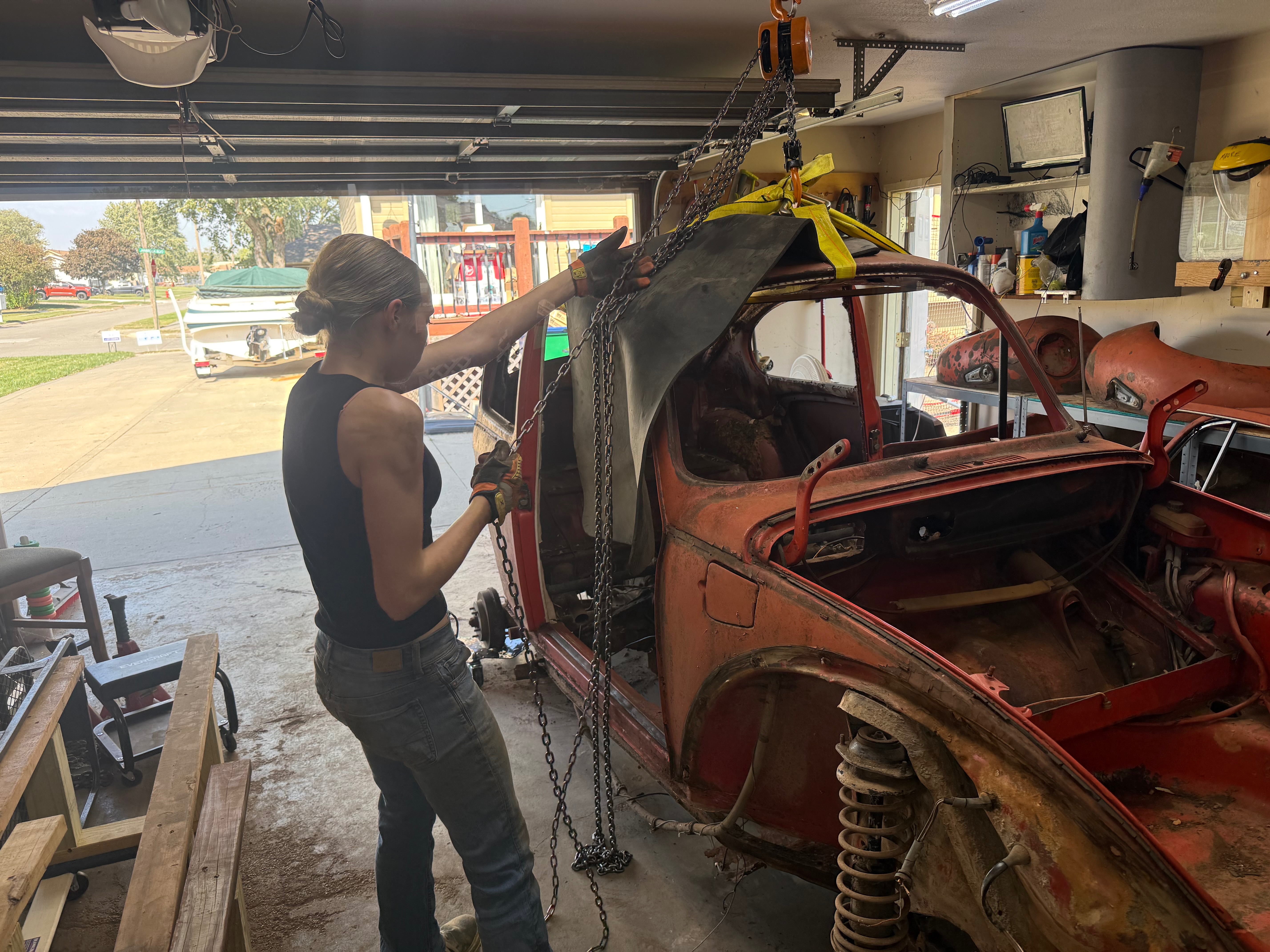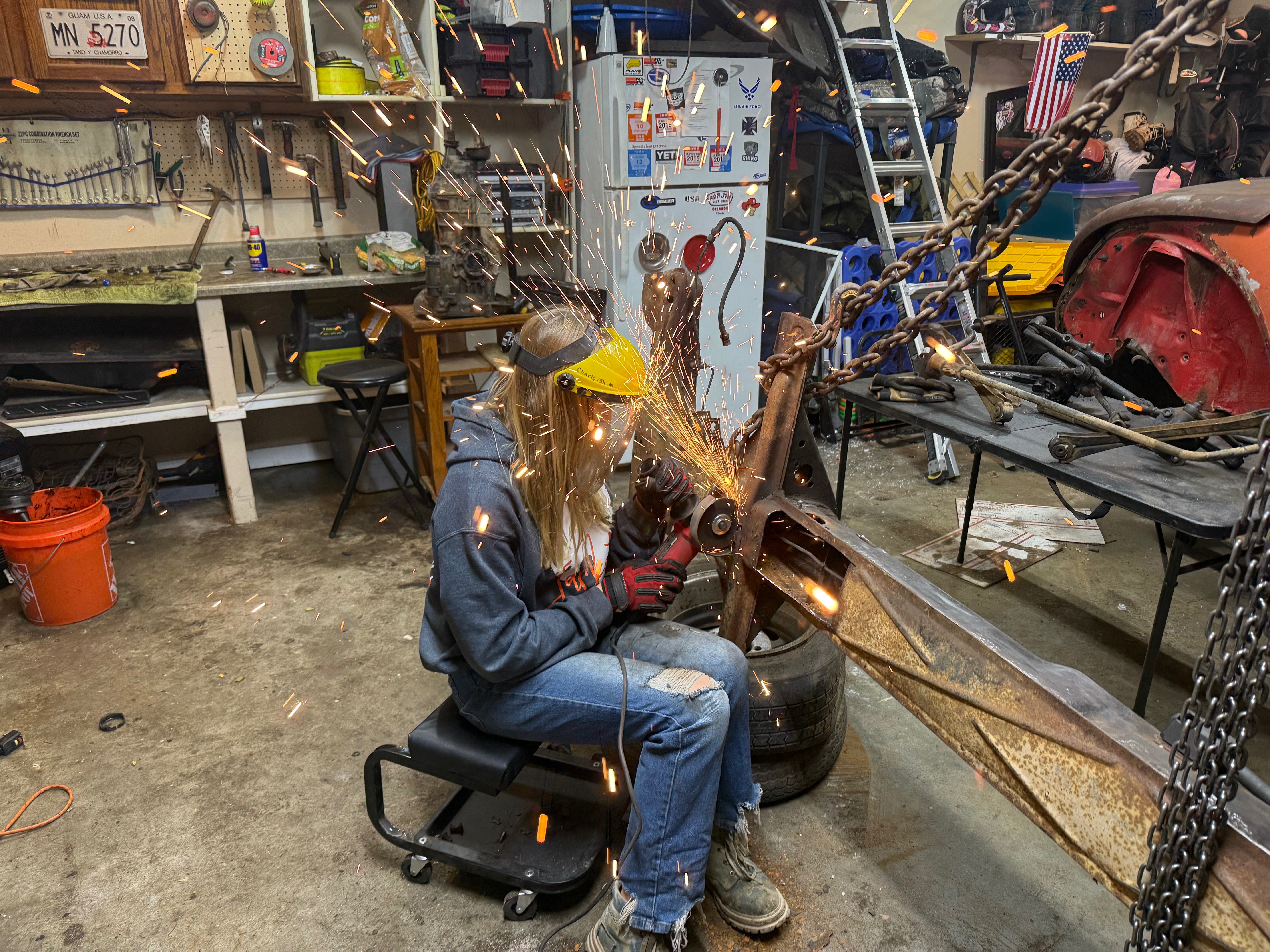 Hi! My name is Charleigh, and I’m 13 years old. My dad and I are restoring a 1974 Volkswagen Beetle together in our garage. We call her Rusty Red. My dad is retired military, and we’ve moved a lot — kind of like dandelions, growing wherever we land. That’s why I named this project Wrenching Dandelion.