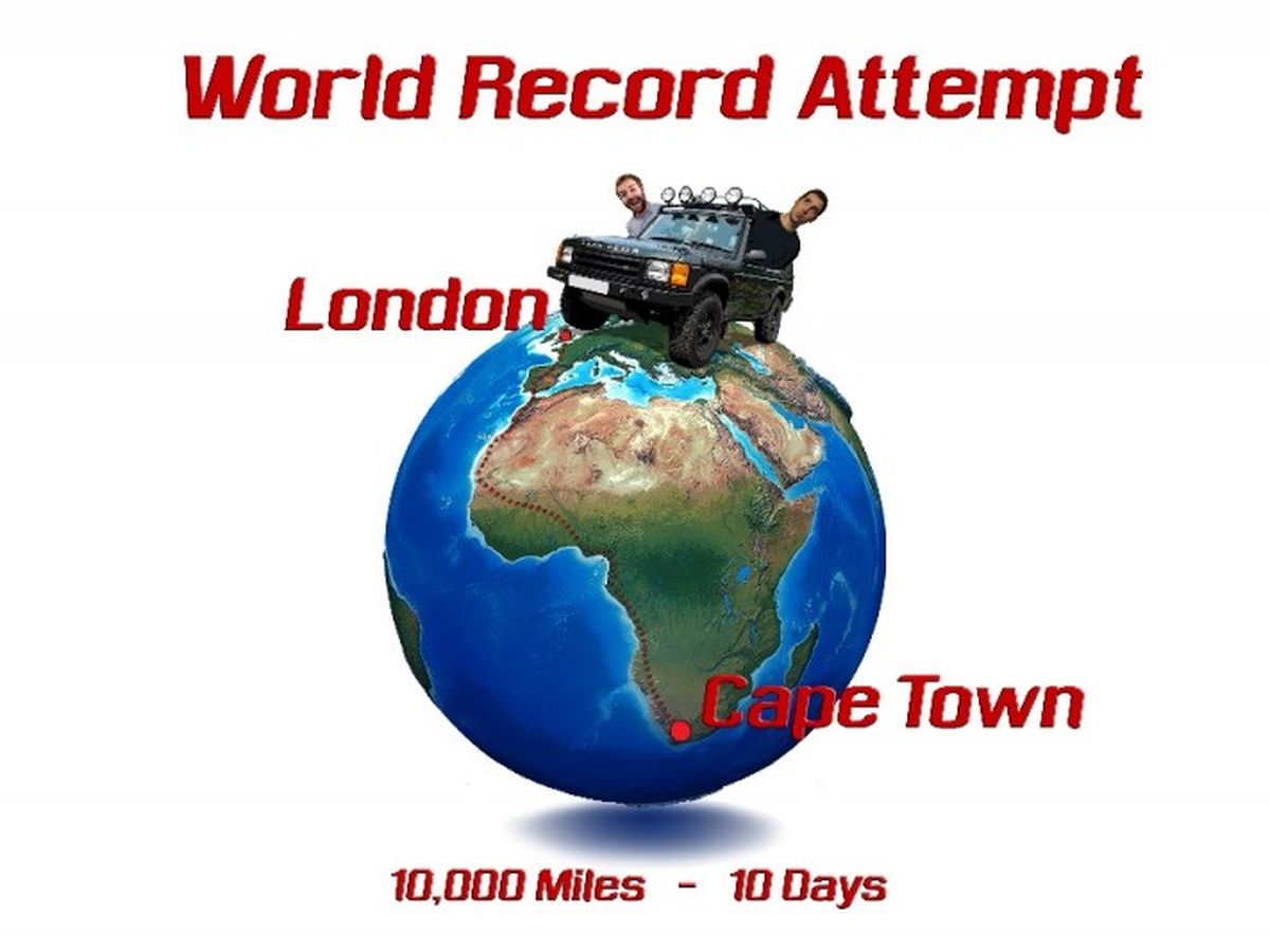 Paul Hanson and George Coleman will be attempting to beat the world record of driving from London to Cape Town. The current record is set at 10 days, 3 hours and16 minutes. In the spirit of the record, it should be completed covering as much land as possible. Therefore not bypassing large areas of land via boat or flying.