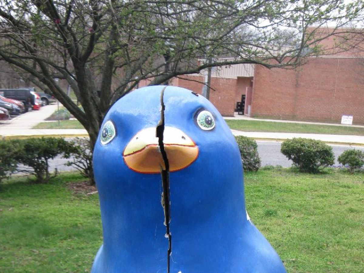 After more than 10 years proudly standing in front of University Park Elementary School, a treasured neighborhood bird sculpture - 'Patriotico' Bird - is cracking in half and must be repaired if it is going to survive much longer.