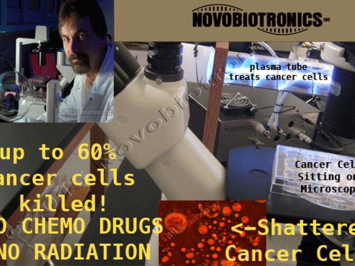 The new treatment is electronic: frequency-specific pulsed electric feilds are directed at cancer cells using a special 'plasma antenna' (something like a special fluorescent light....which broadcasts powerful electric fields which kill cancer cells and slows their growth rate also).