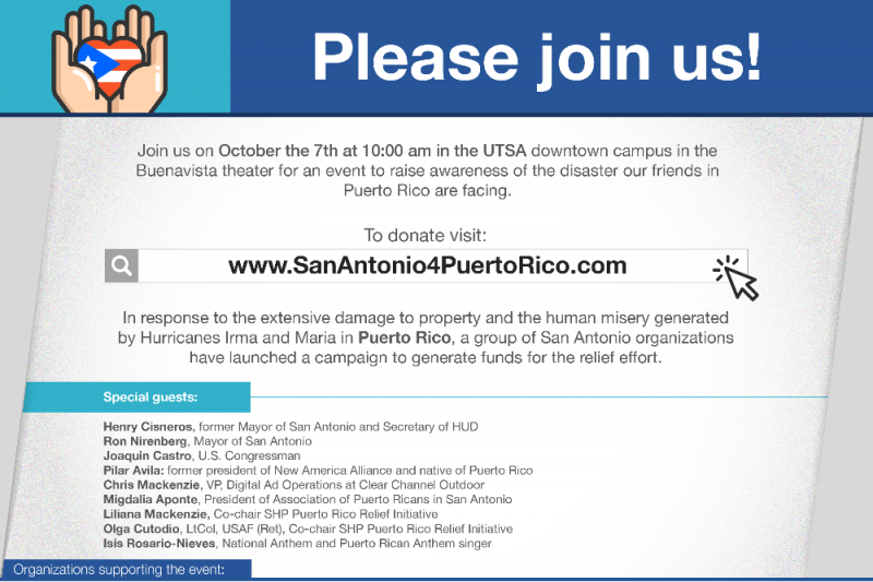 In response to the extensive damage to property and the human misery generated by Huricanes Irma and Maria in Puerto Rico, a group of San Antonio organizations have launched a campaign to generate funds for the relief effort.