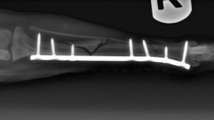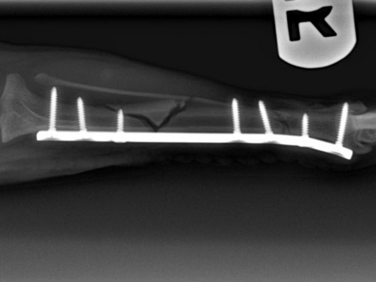 During our holiday trip up to NorCal to visit family, our beloved little chihuahua, Chiqui, that many of you know and love, was involved in an accident which resulted in her right, back leg being broken fairly severely. The break and additional fracture occured in both her tibia and fibula bones and were extensive enough to require an expensive surgery and recovery process: about $1,500 for the initial emergency care and hospitalization and $5,500 for the surgery and medication.
