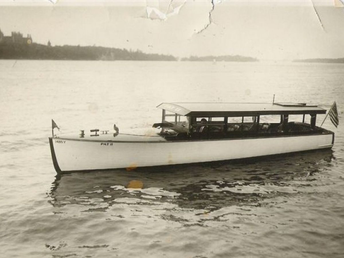 The Pat II was built in 1924 in Alexandria Bay by George Blount and George M. “Pat” Comstock as an iconic Thousands Island Tour Boat. The sleek and classy 39’ boat was launched on the St. Lawrence River. By 1926 the Alexandria Bay Village Board had issued a "Permit for Excursion Boats" to the Pat II. She continued service for many years as a tour boat for various lines.