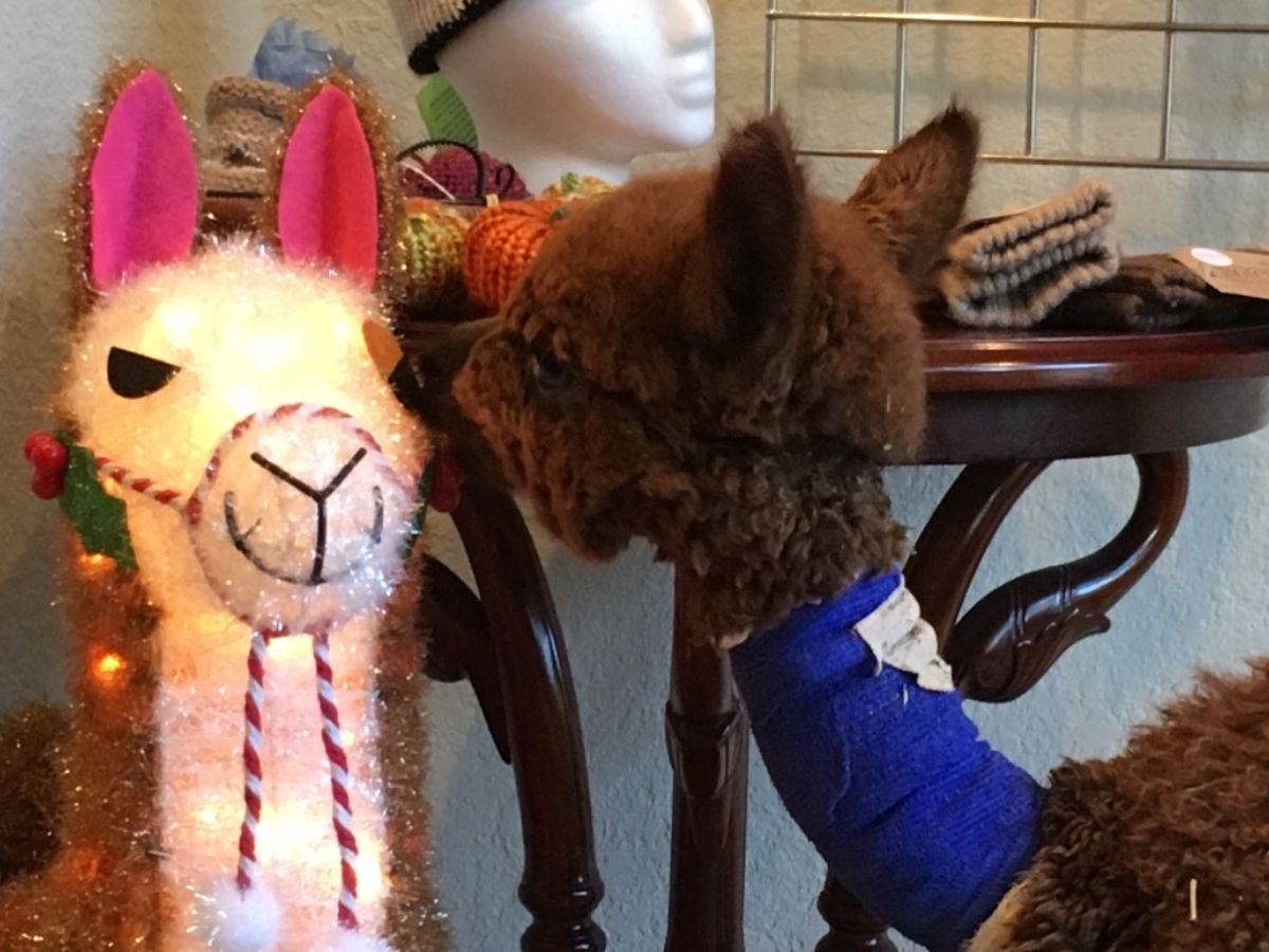 This sweet baby alpaca was attacked a week ago by a cougar. His brave mom chased the cougar down and the cougar dropped her baby. The baby was only a week old and we are astonished that he survived the attack.