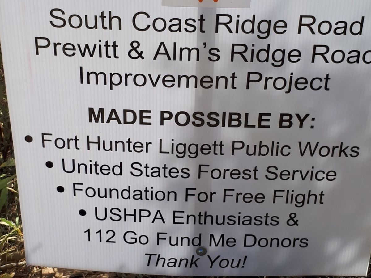 https://www.gofundme.com/big-sur-road-restoration-help-enjoy-the-beauty Please checkout the latest updates! We've made some amazing progress & want to share it with you. We live in one of the most beautiful & celebrated places on the Big Sur coast.  From Prewitt Ridge there are unsurpassed views, both north & south, of the entire coast.   The roads into Los Padres Forest are :  > South Coast Ridge Road > Prewitt Ridge Road  > Alms Ridge Road.  These are all 4WD roads, but with the explosion of camping blogs, Facebook & other social media outlets, our area has become well known for camping, hand gliding & hiking.  Many 2 Wheel drive cars are causing deep ruts, tearing up the roads & turning the roads quite dangerous.  It's around $1,500 just for a tow truck to show up in the forest!  This has happened many times already.  Apple Camp, one of our most notorious areas, was actually shut  down for 20 hrs while the CHP monitored the situation thru the night, waiting for a tow truck for a car that was stuck sideways in the road.  Locals & visitors alike were unable to get in or out during this time. The current conditions create danger for all visitors as well as for residents. We are campaigning to raise money for road base & rock.  Our neighbor, Fort Hunter Liggett, is helping supply some of the repair road work, repairing water bars, etc.  Unfortunately, the U.S. Forest Service does not have the budget to maintain the road.  This summer we were able to repair Chalk Peak, our only section of the road that has asphalt.  The asphalt was privately funded.  Several areas are in dire need of repair & can be quite dangerous.  One of the challenges is that we are very remote, so getting rock & base is expensive to transport to our area.  Your donation will help us fund keeping the roads in decent shape so that the local community & visitors alike can safely enjoy our amazing Big Sur Coast.  Please remember to leave no trace! Any donation small or large will help us toward our goals.  Thank you in advance for your donation - we all appreciate it. Please, if you donate, tell us where you heard about us & why you donated so we can properly thank you! https://www.gofundme.com/big-sur-road-restoration-help-enjoy-the-beauty