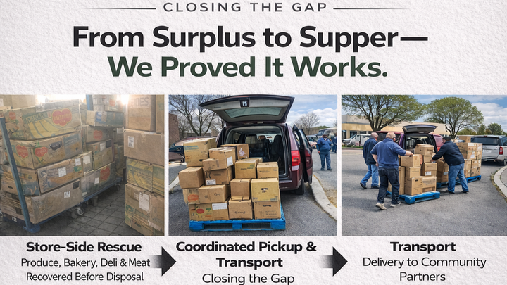 We are a 501(c)(3) nonprofit dedicated to rescuing unsold but edible food from grocery stores and delivering it directly to people in need. Unlike traditional food rescue efforts that rely only on food banks, our model is different: