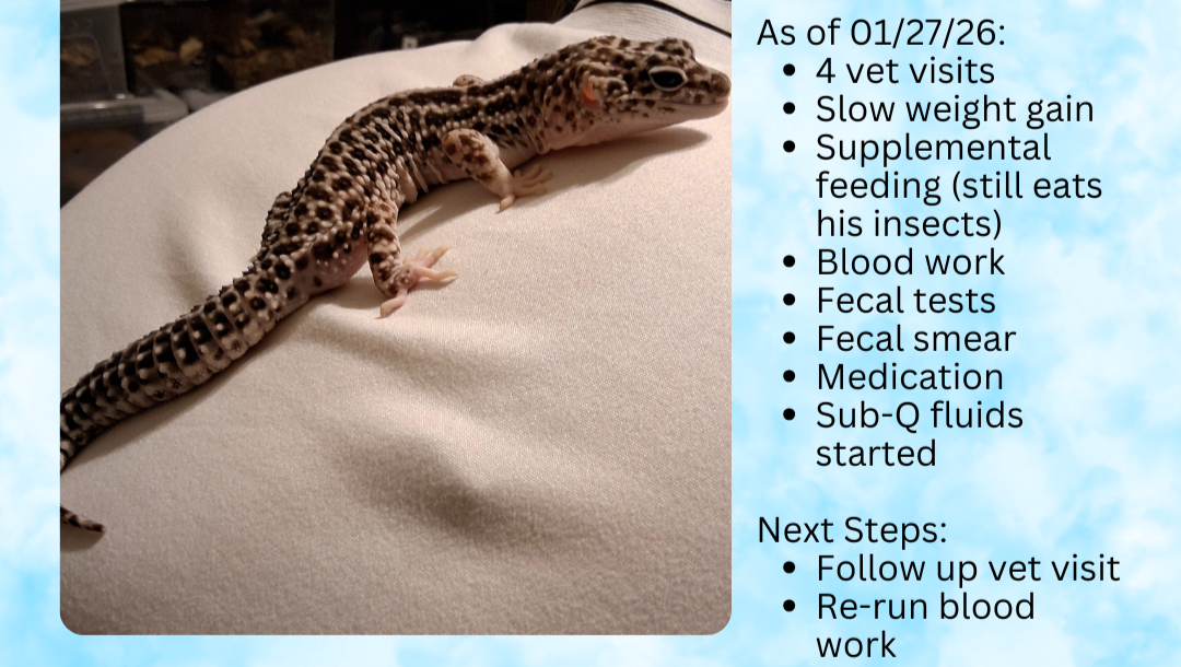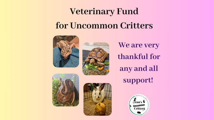Multiple intakes with unexpected health issues and medication needs, along with continued care of older and ill Sanctuary animals has driven Jenn's Uncommon Critters' veterinary bills up. We are currently sitting at $4,656.46, which is due by the end of February, and we need your help to pay down some of these bills so we can keep getting our critters, and others waiting to come in, the care they need. Please share and donate if you can.