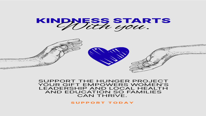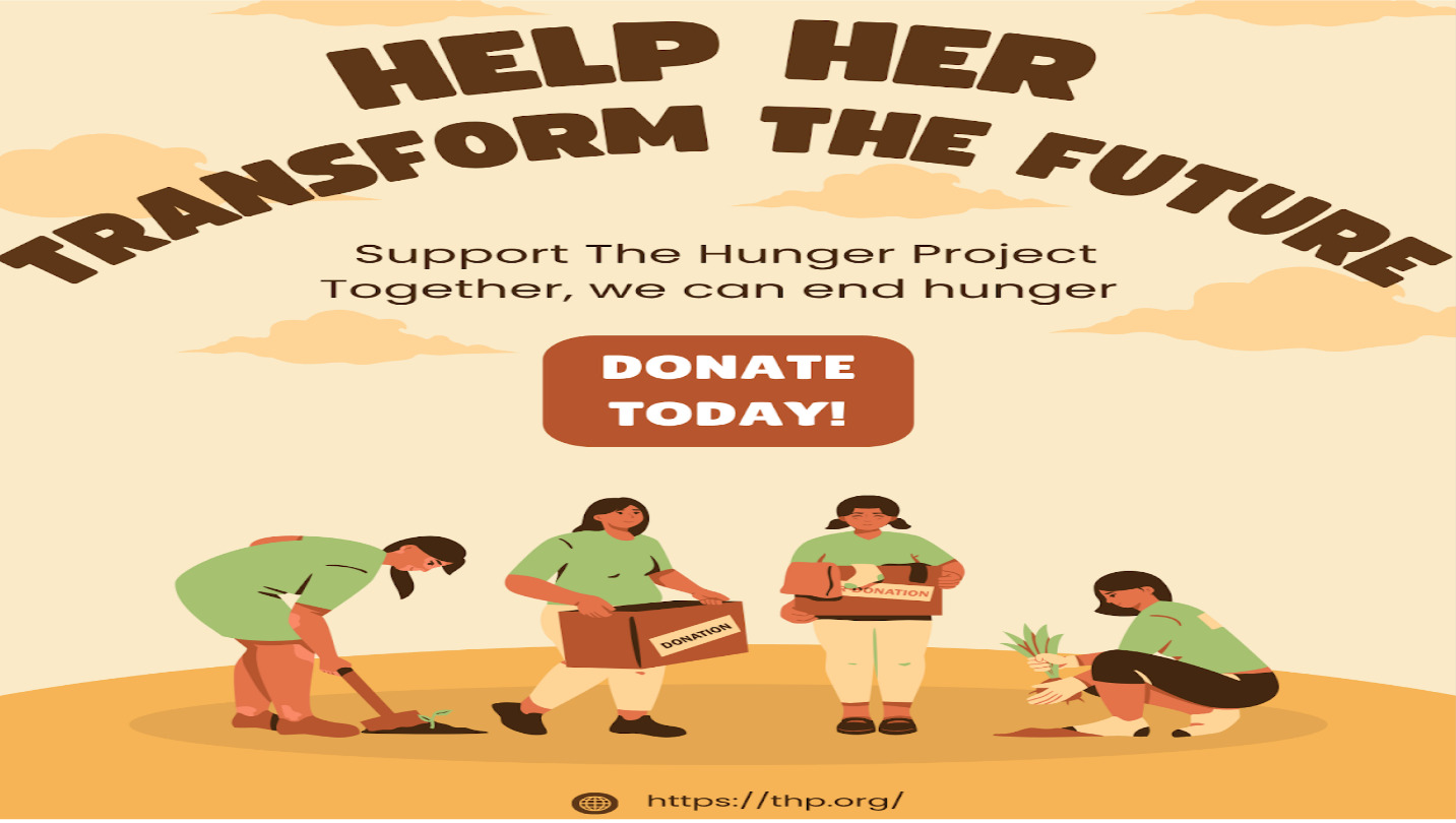 The Hunger Project’s vision is a world where every woman, man, and child lives a healthy, fulfilling life of self-reliance and dignity. Your gift helps feed families today while building long-term solutions that end hunger for good. Every donation creates opportunity, empowers communities, and fuels hope. Together we can feed lives, strengthen futures, and move closer to a world free from hunger.