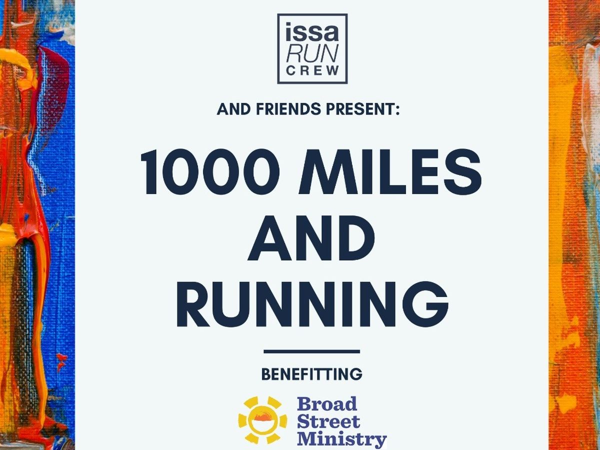 When Covid-19 started to take the country by storm and many runners were saddened by the news of their Spring Races being canceled Issa Run Crew (IRC) along with the global run community took the stance that the races might be canceled, but running is not! So we have been running as much, and as safely as we possibly can. But now, we’ve decided to make our miles matter.So here's the deal. From 5.3.20 - 5.10.20 IRC and some of our friends are pledging to cumulatively run 1000 safe and solo miles to help raise money for Broad Street Ministry and their efforts to continue providing meals for the less fortunate during these trying times. We will keep everyone updated on our progress via Instagram (@IssaRunCrew). 1000 miles is a pretty hefty goal, but with determined hearts (and legs) it’s one we think we'll be able to achieve!
