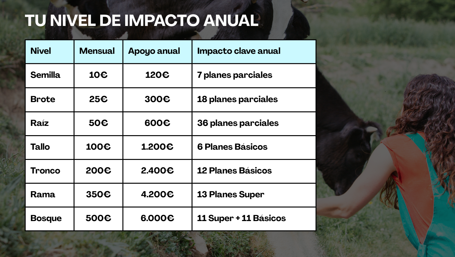 Tu nivel de impacto anual (con 5% comisión donante incluida):