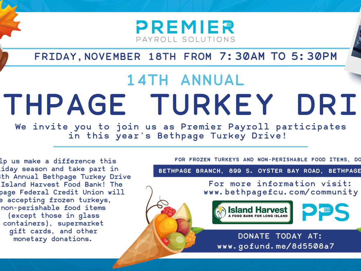 We invite you to join us as Premier Payroll participates in this year's Bethpage Turkey Drive!