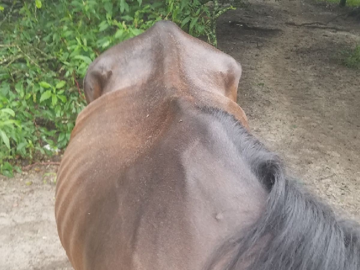 I have been asked to take this 7 year old Thoroughbred gelding as soon as possible. He is super skinny, as you can see. The current owners have done the best they can for him and I will not bad mouth them. They have tried many different things but have yet to make any progress. So thru persistence, her neighbor (my friend) has finally convinced her to give him up. But meanwhile he has gone even further down hill. He is in a desperate way. I am going to need help for him. Can you spare some money to help? I set the total at $1000 to just start getting him healthy.