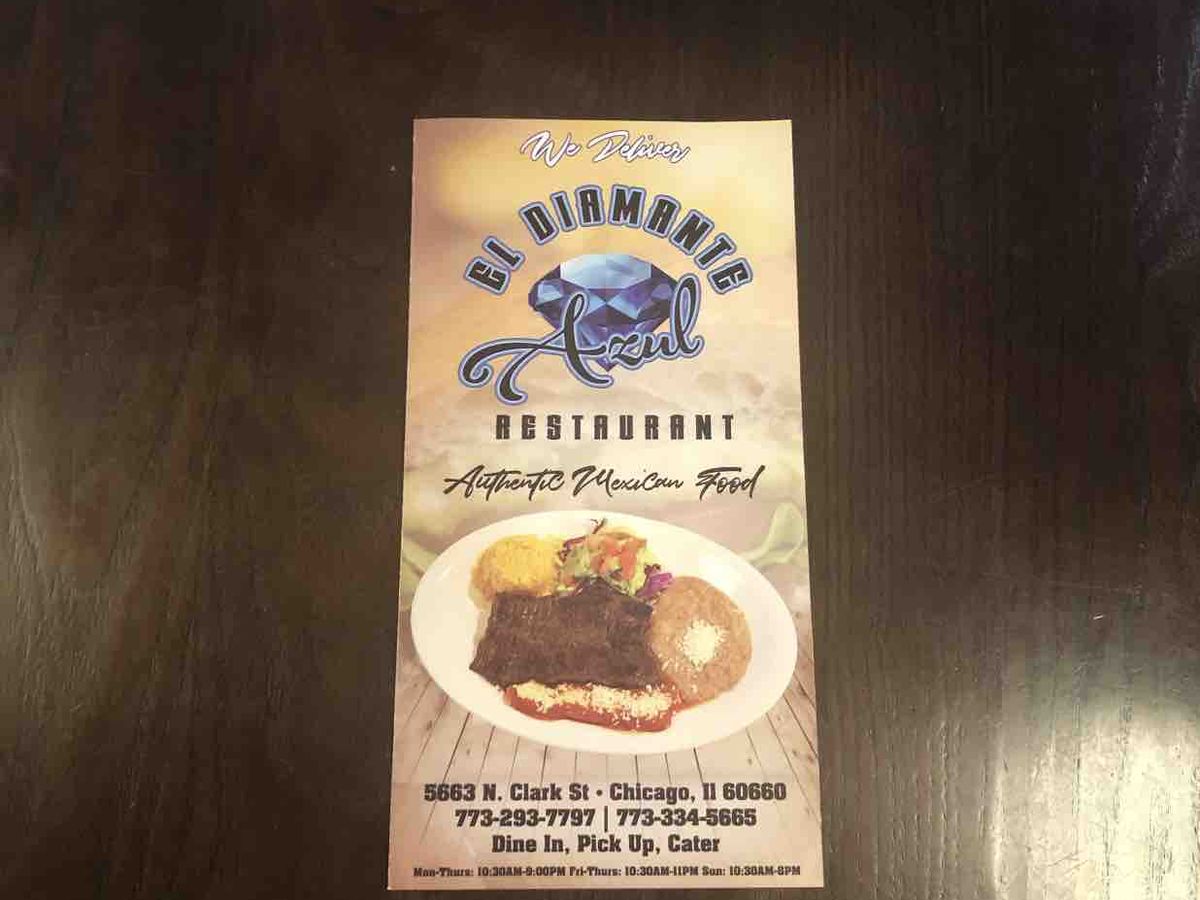 This is Maria Alcantar, proud owner of El Diamanté Azul Restaurant located at 5663 N. Clark st.