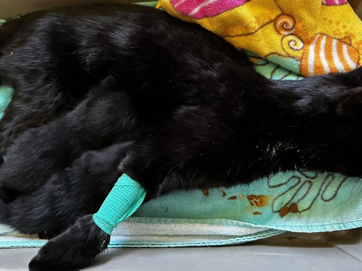 One of our rescued, Wally, who was wonderful mother to her 2 new kittens, recently developed progressive paralysis and before passing away, dragged herself back to her take care of her two kittens. We had 2 ER visits to try and save her, which unfortunately were very expensive. And are now taking care of her two new kittens.