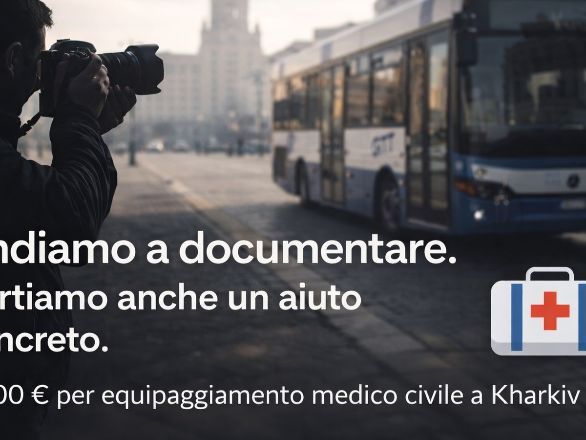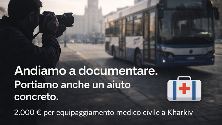 Accanto al reportage, vogliamo portare un aiuto concreto: raccogliere 3.000 euro per acquistare direttamente a Kharkiv kit medici civili di primo intervento, destinati a realtà locali che operano sul territorio.
