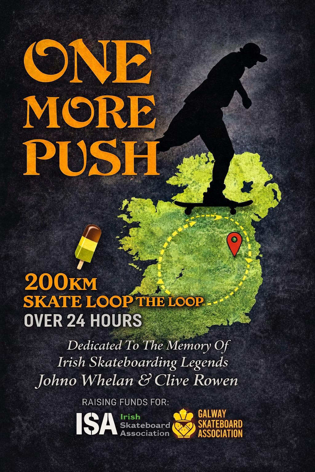I’ll be raising funds for the Irish Skateboard Association and the Galway Skateboard Association to help support their goals and the future of skateboarding in Ireland.