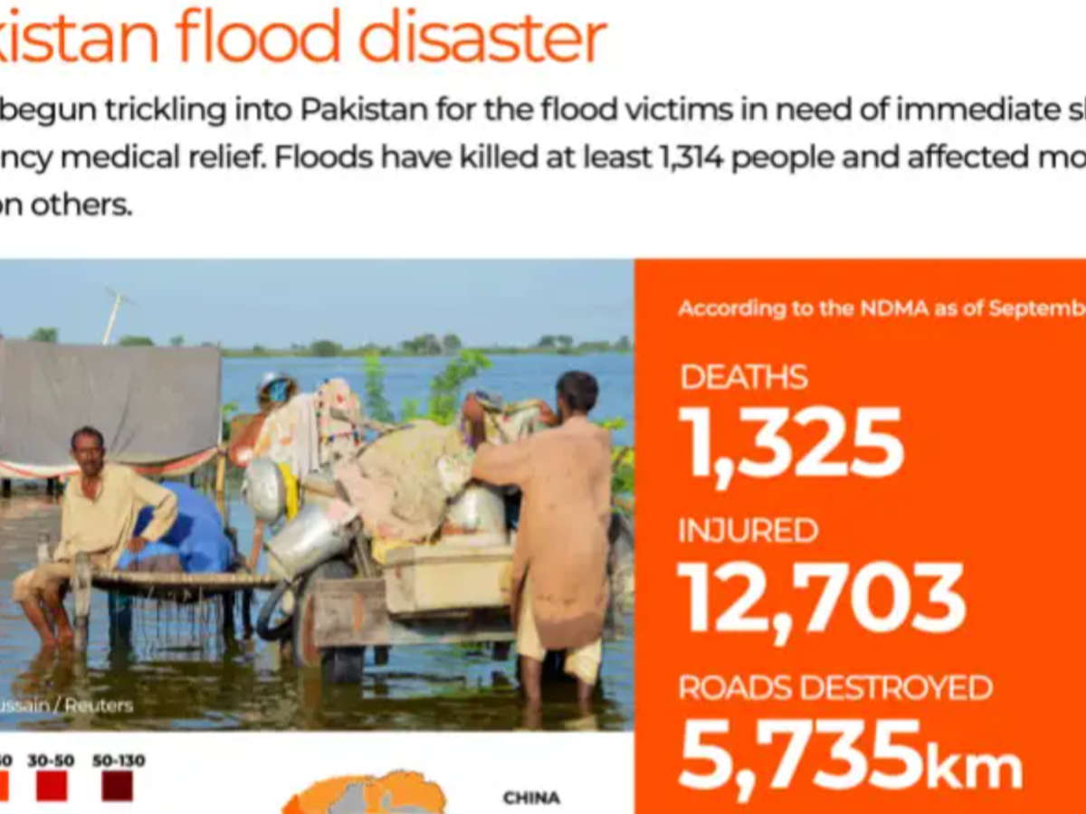 The government has declared devastating floods a “national emergency” after widespread flooding and damage have affected over 30 million people, with a death toll exceeding 1,000, including hundreds of children. Roads have been washed away, bridges destroyed, and 580,000 homes have been damaged.