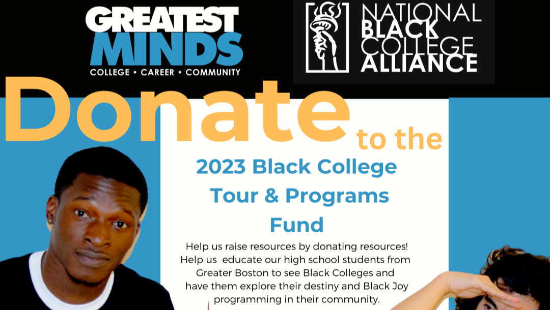 Please support by giving a donation to the "2024 Black College Tour & Programs Fund." Help us raise resources by donating resources! Help us educate our high school students from Greater Boston to see Black Colleges and have them explore their destiny and Black Joy programming in their community. Donate $10, $25, $50 $100, or $250 dollars.