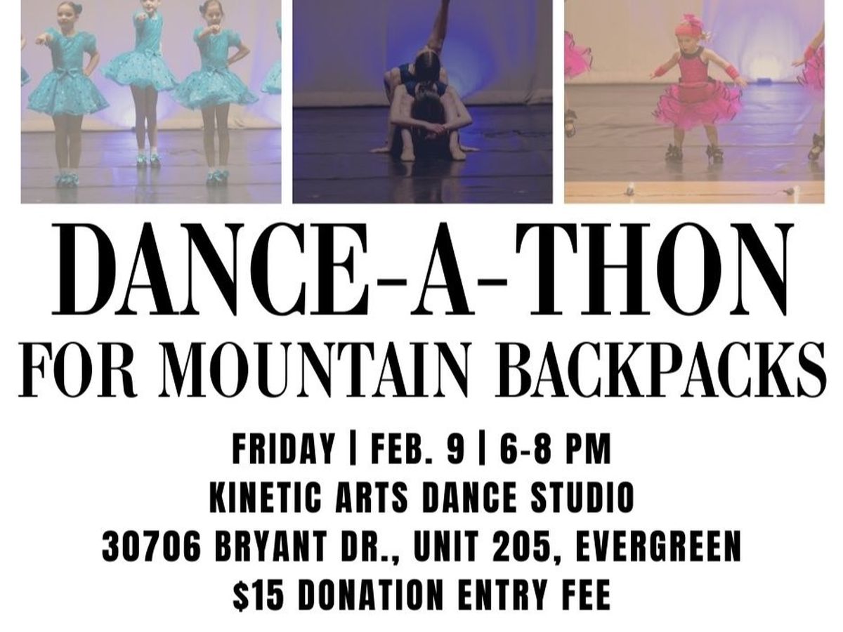 Join us for the 6th Dance-A-Thon for Mountain Backpacks, Friday, Feb. 9th from 6-8 pm at Kinetic Arts Dance Studio!