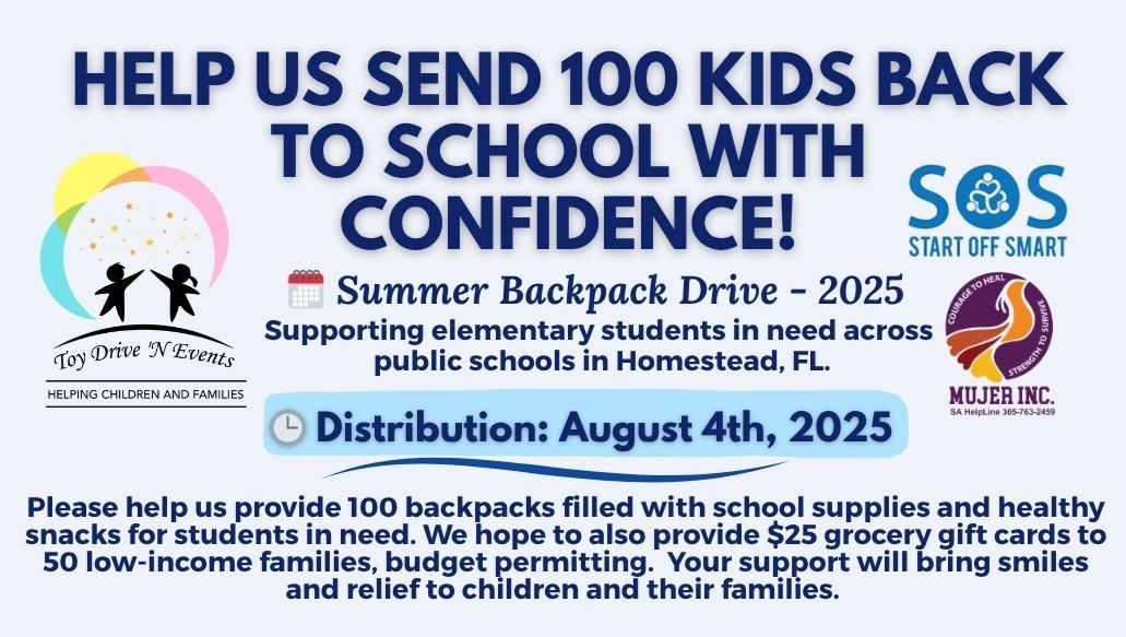 Back-to-school season can be a financial burden for many families in Homestead. Your donation helps ensure that no child is left behind on the first day of school. With your help, we’re not just distributing backpacks, we’re delivering hope, dignity, and opportunity.