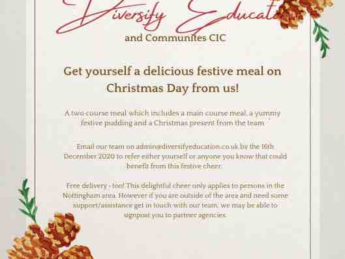 Nottingham area. From the funds raise we will provide a free two course meal and small gift including free home delivery for recipients on Christmas Day.