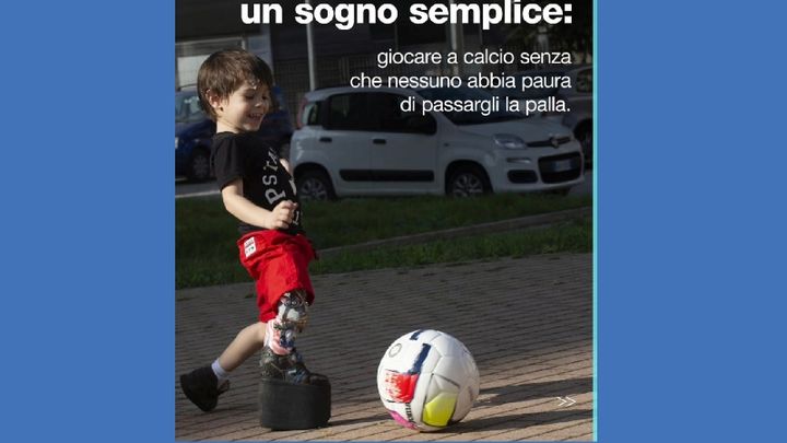 Kevin è nato il 5 dicembre 2017 a Torino con una malformazione alla gamba destra.
