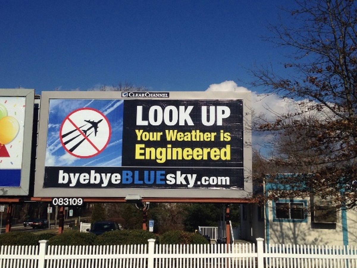 Our time has ran out on our Woodstown, New Jersey Billboard! I would love to get this billboard back up as soon as possible as it has gotten much attention! Positive things have come about from this great location. I will say more in an update , as I don't want to jinx it. Although geoengineering , weather modification , solar radiation management, are the official terms for chemtrails, I prefer to call them chemtrails as that is what they are.